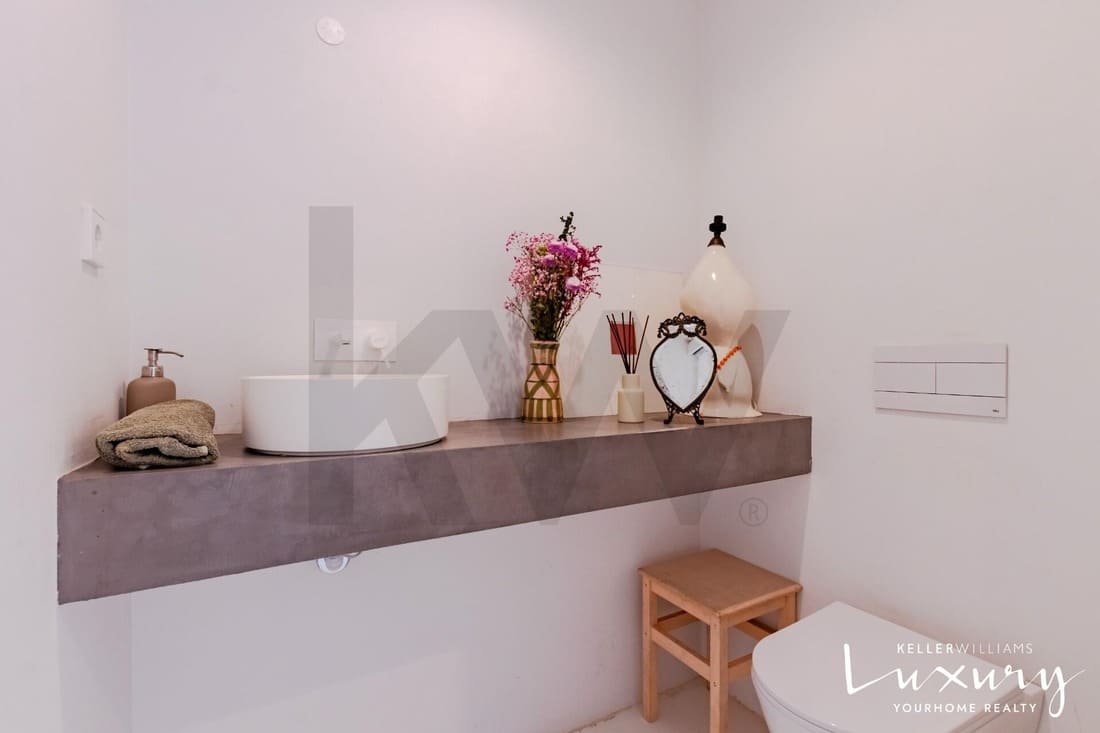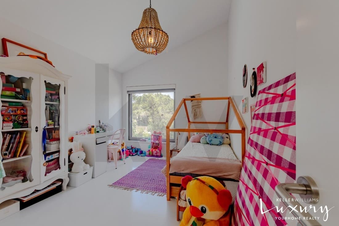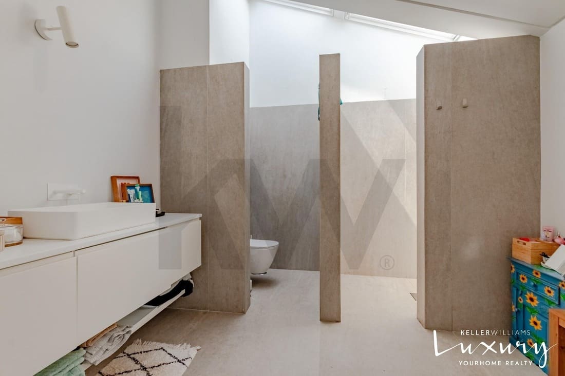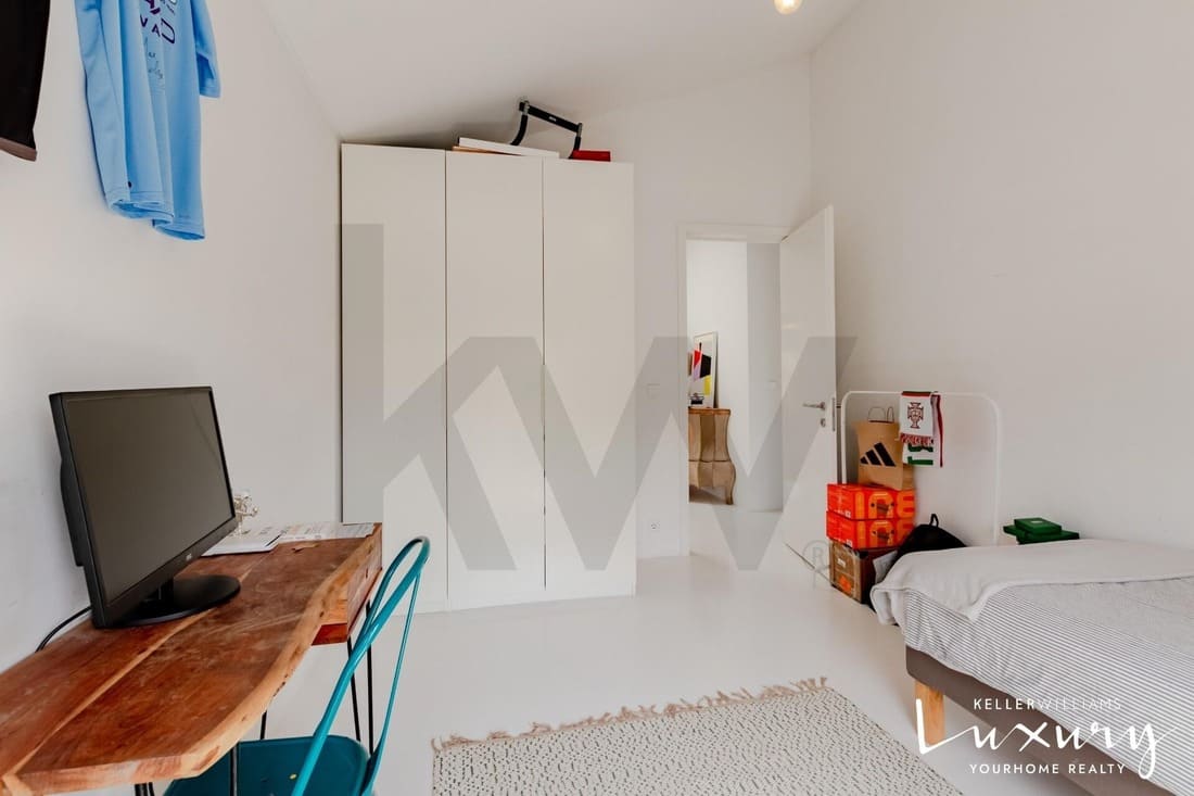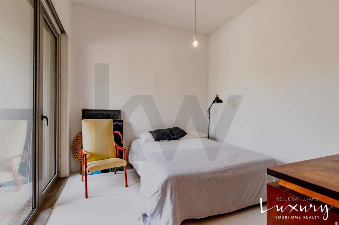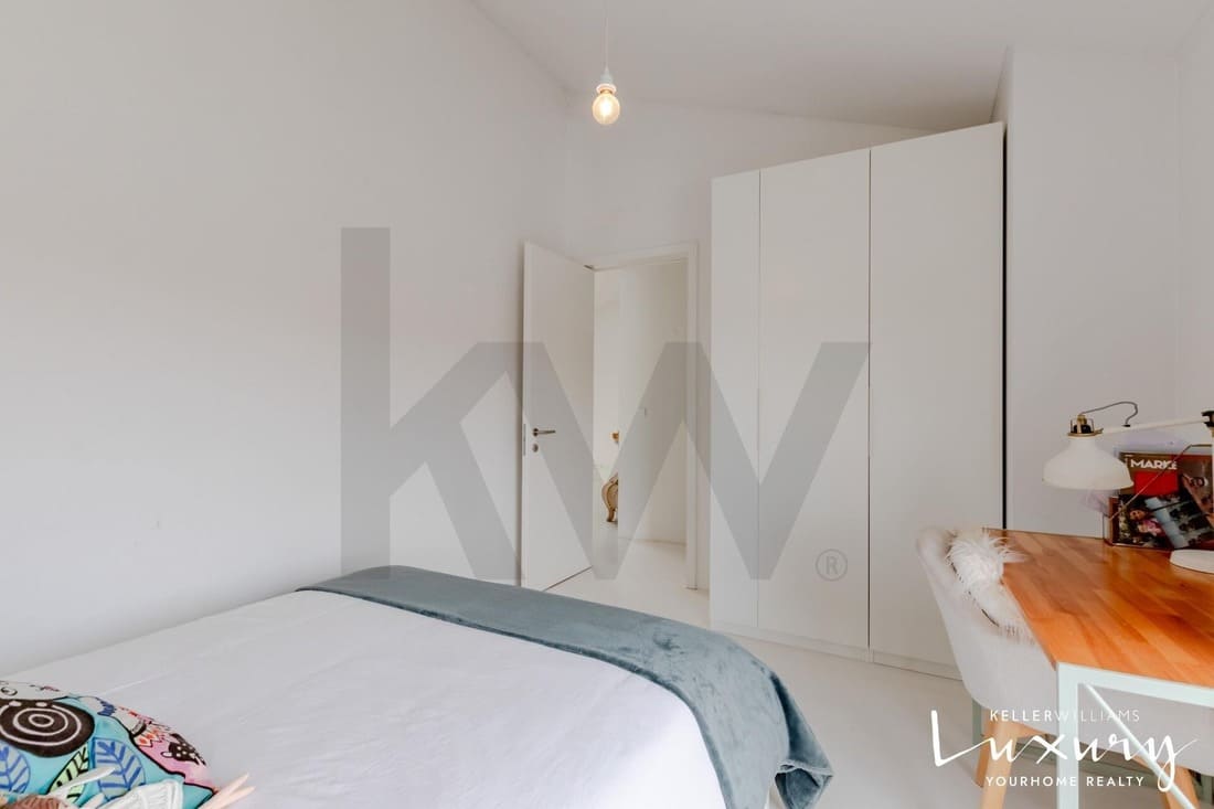 O piso superior acolhe a master suite com varanda privativa, casa de banho espaçosa e elevada luminosidade. Existem ainda quatro quartos adicionais, apoiados por duas casas de banho completas, todos distribuídos em torno de um amplo hall com janela de teto tipo VELUX, proporcionando uma agradável entrada de luz natural.