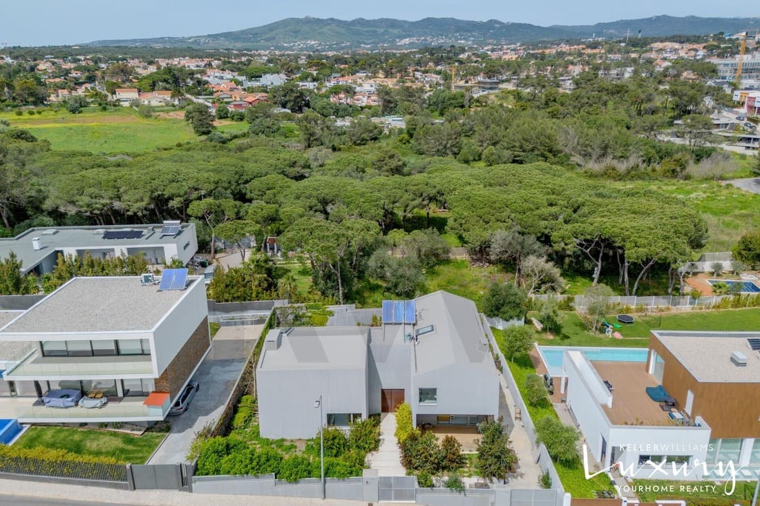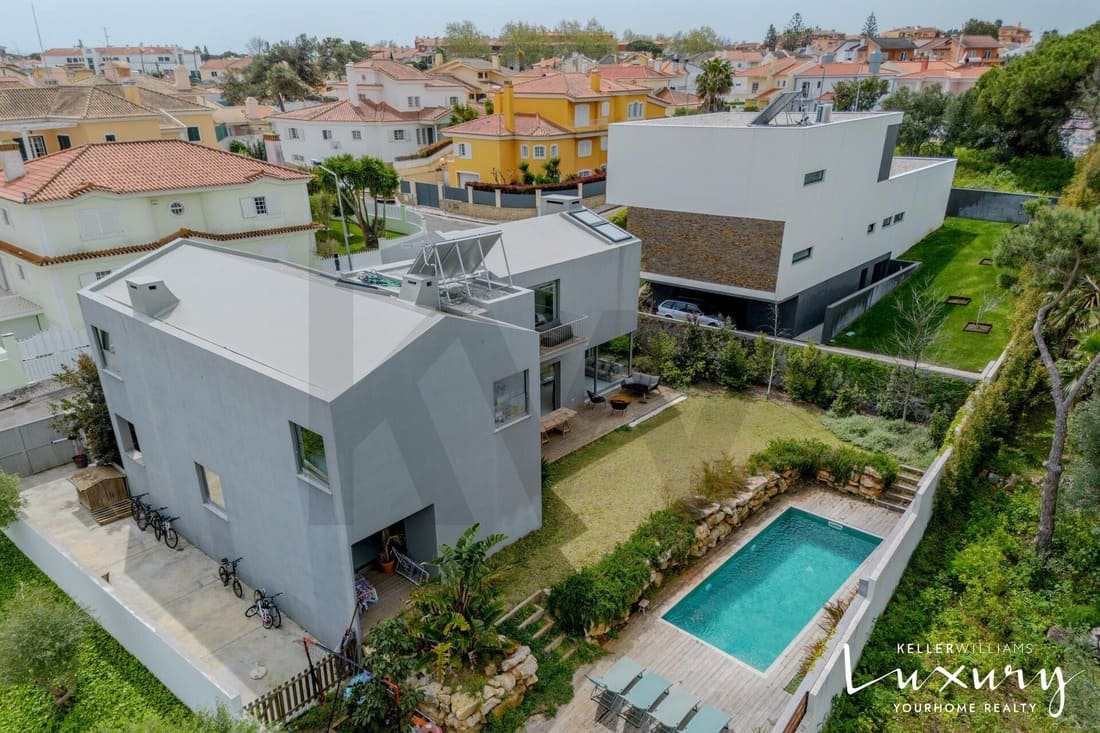 Inserida numa das zonas mais exclusivas e prestigiadas de Cascais, esta moradia isolada T6, tem uma arquitetura contemporânea assinada pelo reconhecido arquiteto Miguel Saraiva. É um verdadeiro refúgio urbano onde o conforto, a luminosidade e a elegância se encontram em perfeita harmonia. Construída em 2022 com materiais de elevada qualidade, distingue-se pelo seu design moderno, linhas geométricas marcantes, pés-direitos altos e amplas janelas que permitem uma envolvência plena com o exterior, privilegiando a luz natural em todos os espaços.